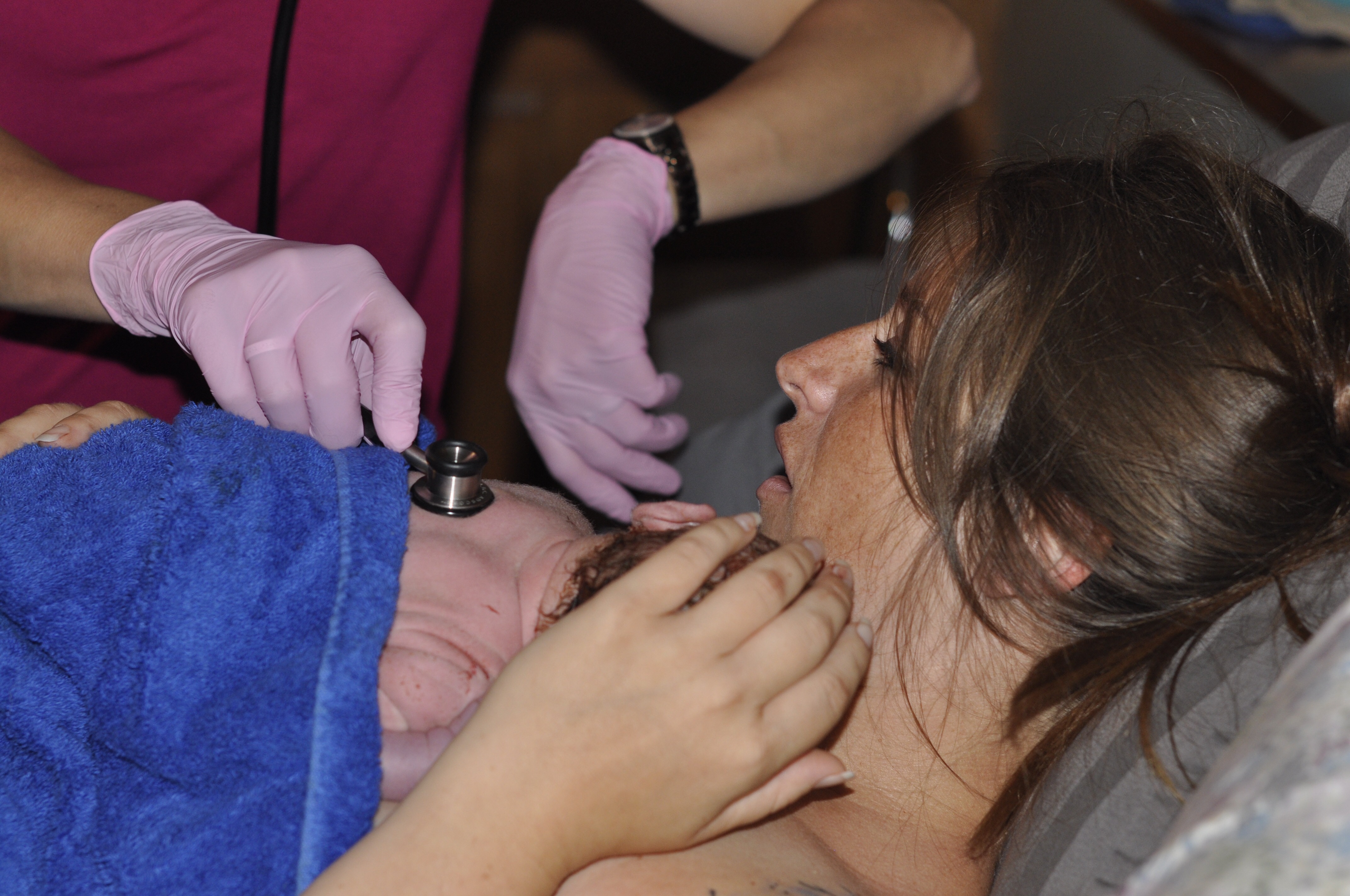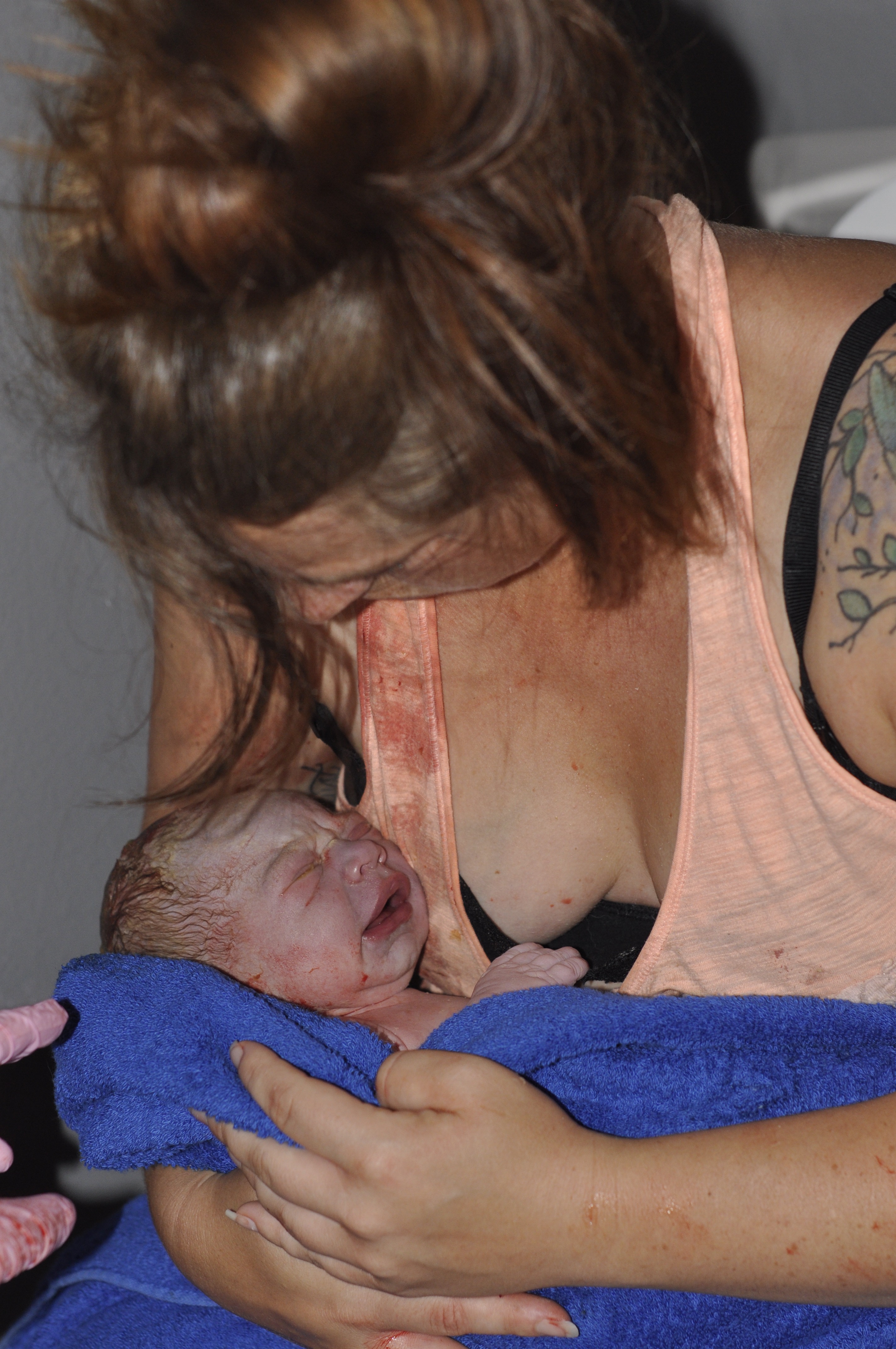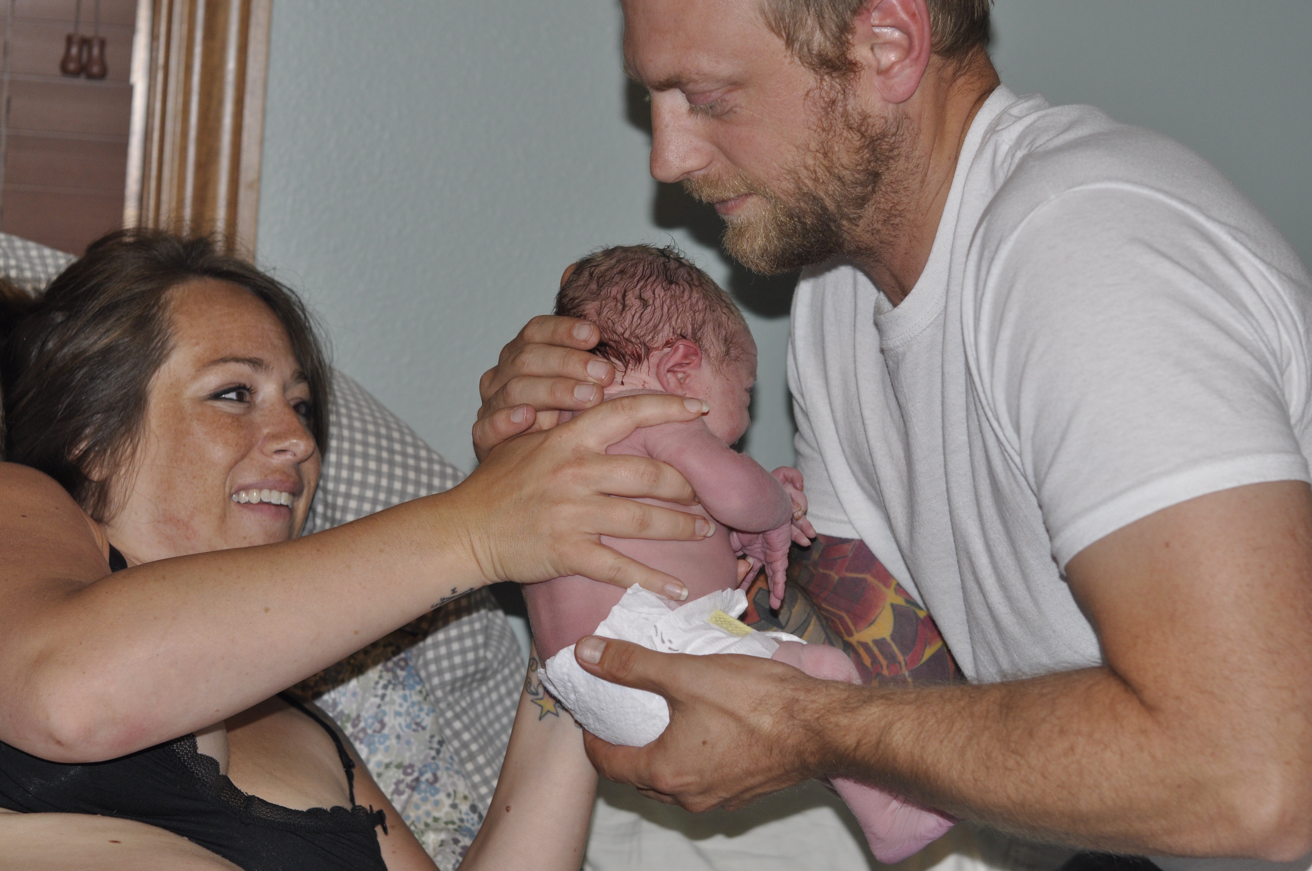 Soon his head was out and he was making little noises. I was standing/squatting so Jasper came over and helped hold me up, up until then there was nothing he could really do for me. I did not, however, let go of the handle bars. I really loved them.