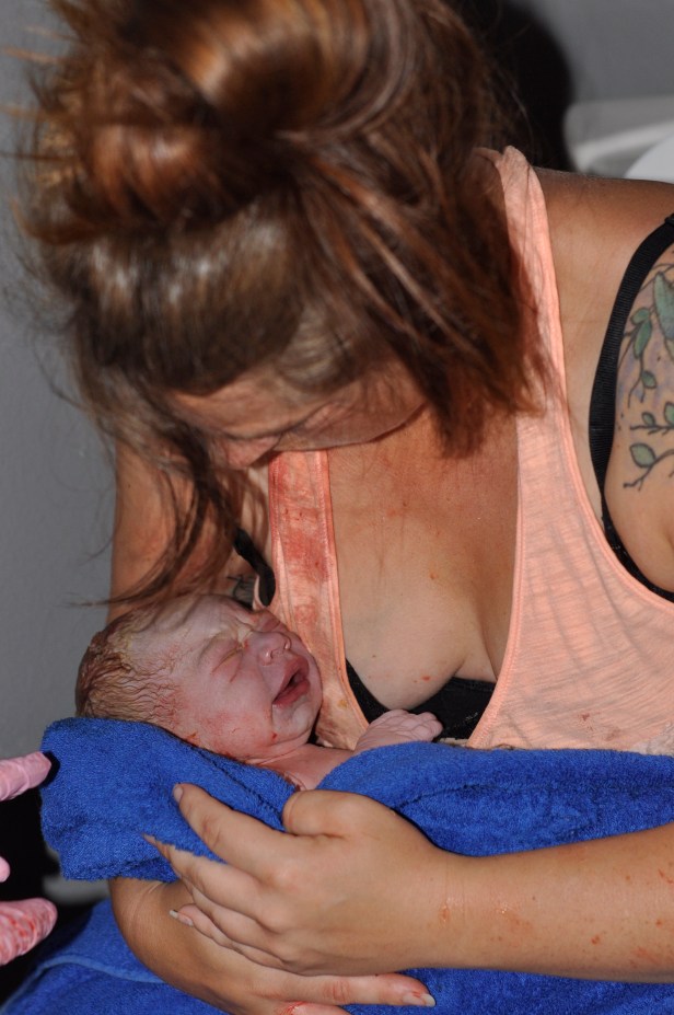Jasper was legit still unloading the car when someone told him that our baby’s head was almost out. I felt a strong instinct to push that felt so amazing. I needed no coaching on where to direct it. My body knew exactly what it was doing.