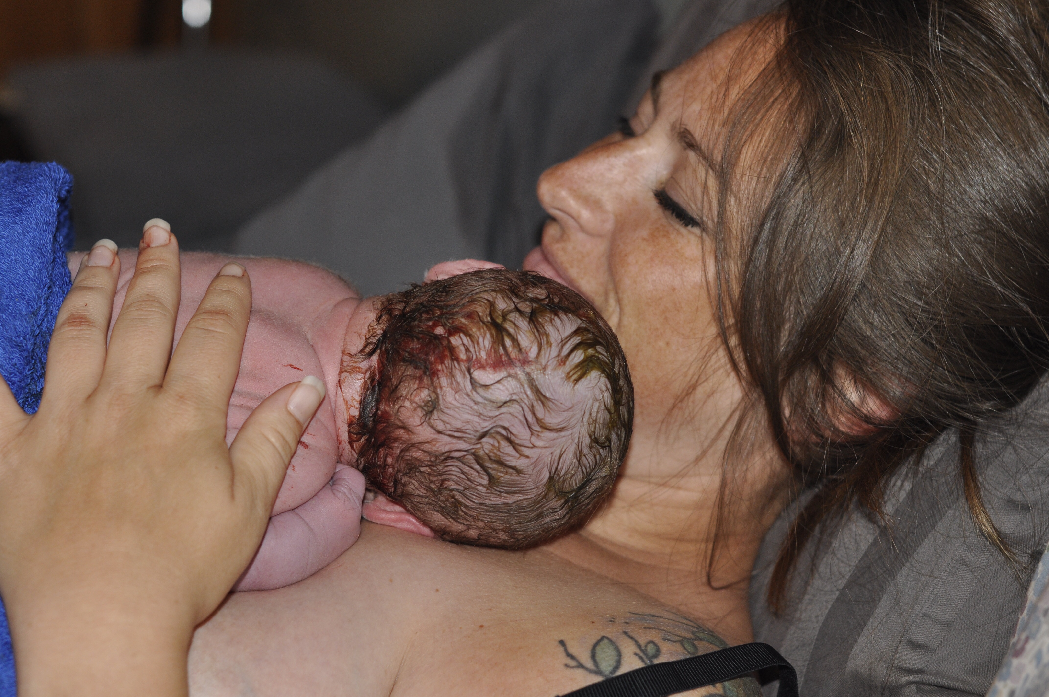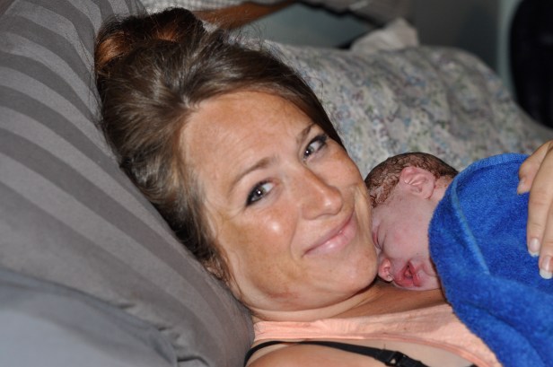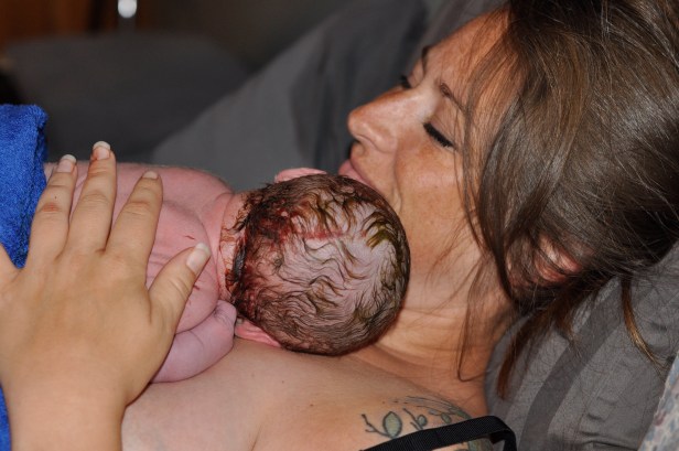 I realized as soon as I got in the bathroom that I wasn’t leaving. There were these great handle bars on the walls and I had a very tight death grip on them that I loved. I screamed for Karen and she came in and I said, “I can’t do this.” She said, “Everyone says that at the end. I was still in denial that I had gotten to this point. She reached down and asked if I wanted to feel the head but I could feel exactly where it was without needing my hands. This was it.