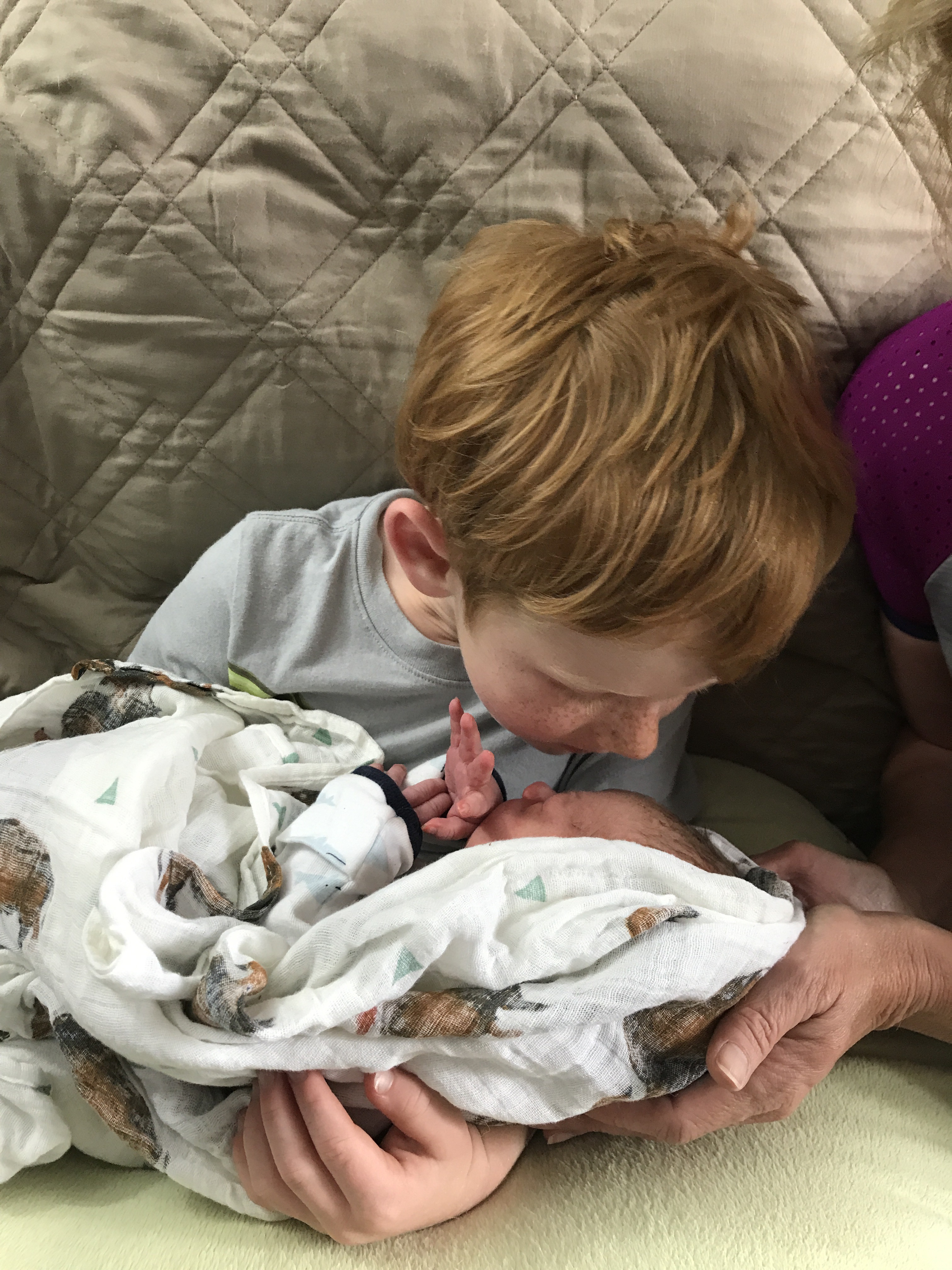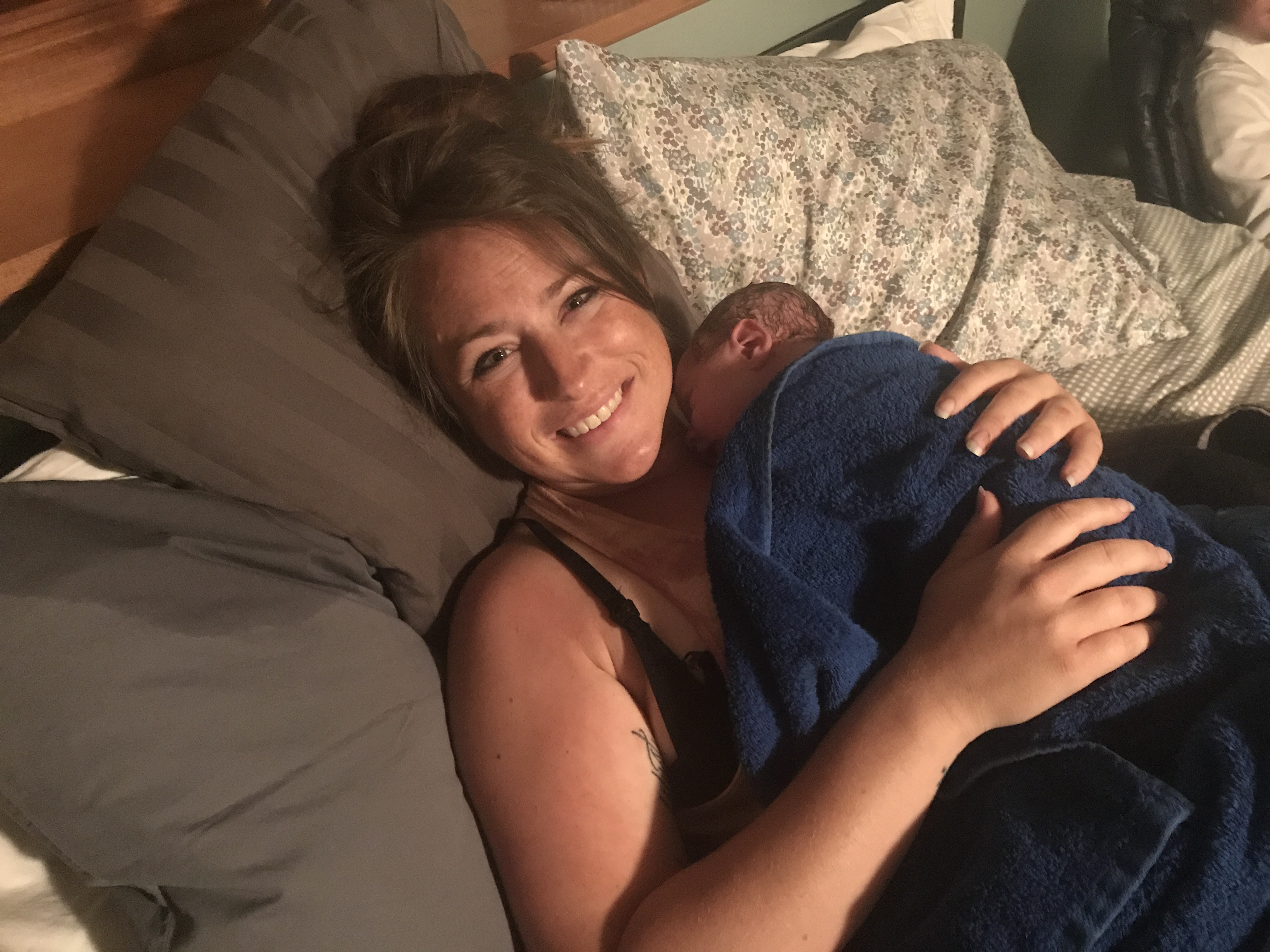 We walked into the bedroom and held our little man and FaceTimed big brother less than an hour after saying goodnight (Grandma’s mind was blown at this timeline) and luckily he was still awake. Eventually I delivered the placenta. Cord clamping was not done until the cord was white and no longer pulsing. Bodhi laid with me and Jasper for over an hour before he got his newborn exam, which was all done in the bed with us. And at 1am we were headed home.